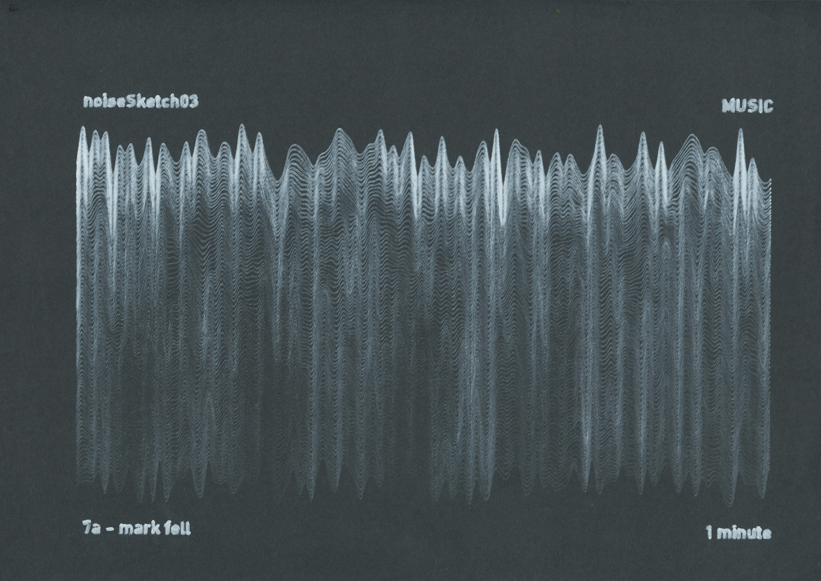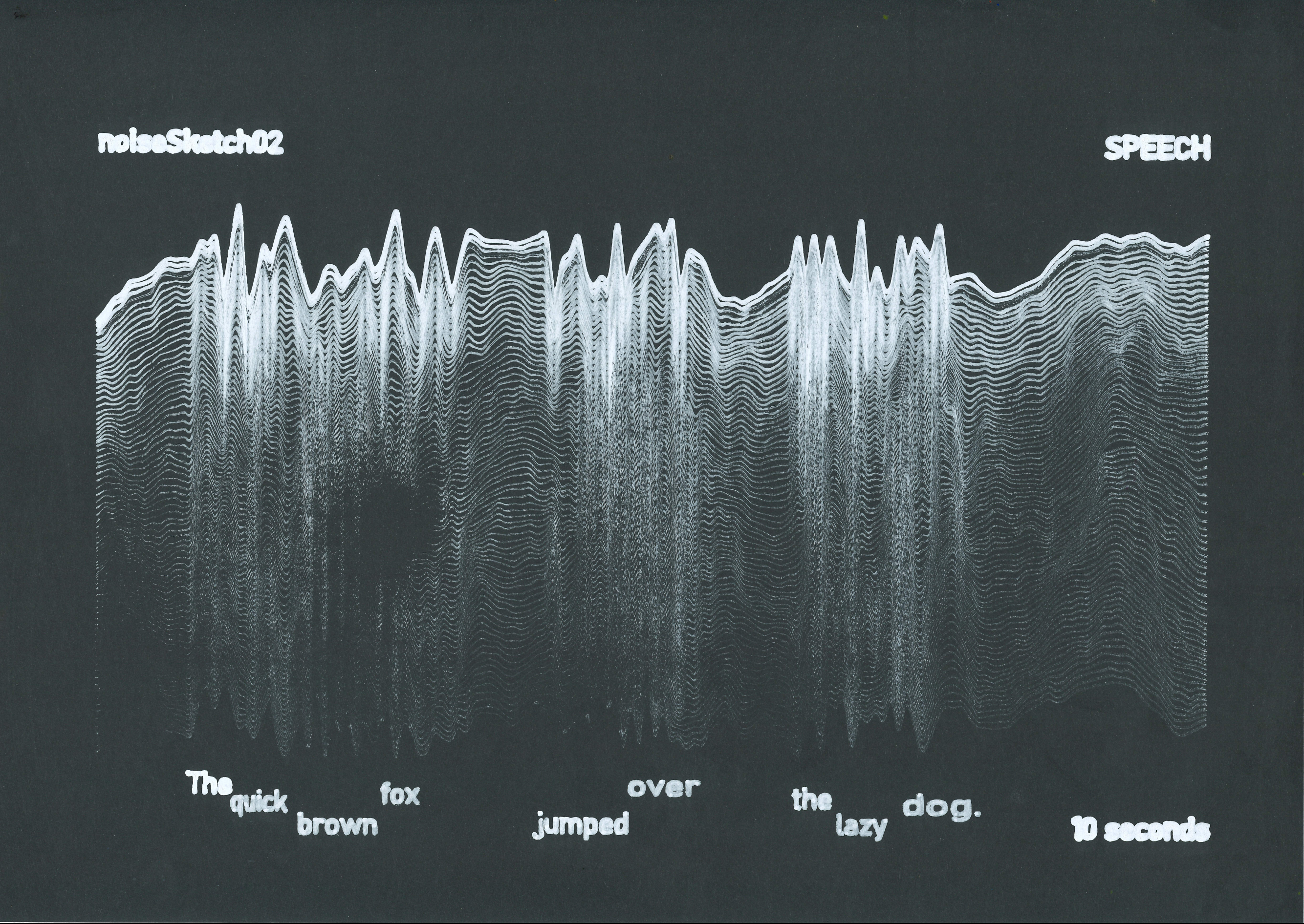 Abstracted noise-field blankets representing the dynamic course of sounds over 3 different scales of time.